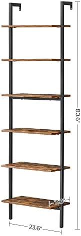 VASAGLE Industrial Ladder Shelf, 6-Tier Bookshelf, Wall Shelf for Living Room, Office, Kitchen, Bedroom, 23.6 x 11.8 x 80.6 Inches, Rustic Brown and Black ULLS103B01