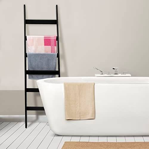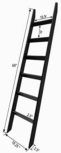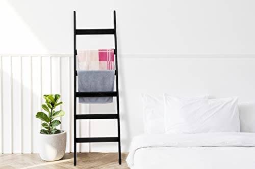 VASGOR 68" Blanket Ladder Wooden Decorative, Wall Leaning Blanket Holder Rack (Black)