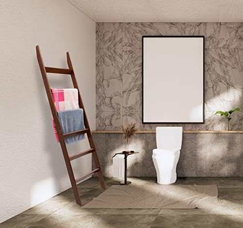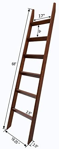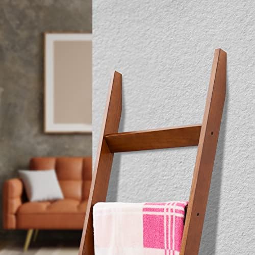 VASGOR 68" Blanket Ladder Wooden Decorative, Wall Leaning Blanket Holder Rack (Brown)