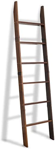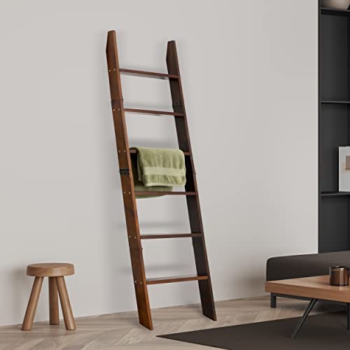 VASGOR 68" Blanket Ladder Wooden Decorative, Wall Leaning Blanket Holder Rack (Brown)