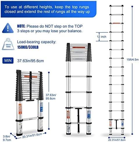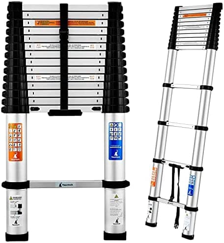 Vauxtech Telescoping Ladder 15FT Aluminum: Telescopic Extension Ladder One Button Retraction Collapsible Ladder Portable Compact Folding Lightweight Ladders for Home RV Camping Attic 330 Lb Capacity