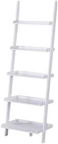This White Finish 5 Tier Bookcase Shelf Ladder Leaning – 72″ Height is a great addition to your home decor. Features 5-tier of ladder shelving for all your storage needs. Can store books, decorative items, baskets, etc. Is used in all rooms. Measures 72 inches high x 24 inches long x 16 inches deep. Assembly required.