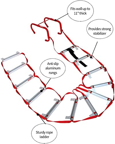 【Safety and Strong load rating】Our two-story fire escape ladder with strong load rating and anti-slip extra wide aluminum treads for easy and safer use. Tested up to 1000Lbs and can be used by up to 3 people at the same time.