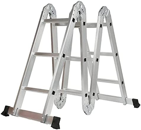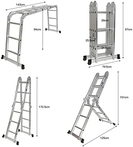 Made of aluminium alloy, this ladder is both sturdy and lightweight making it light enough to easily carry around but tough enough to support up to 330lbs/150kg. The thick and durable metal composition is rust-proof and therefore prevents corrosion, dents and other deformations from occurring during general use. Feel safe and supported whether working indoors or outdoors with this premium quality aluminium alloy ladder.