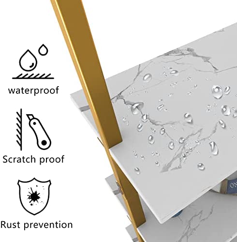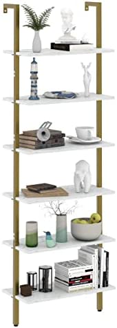 Wolawu Ladder Shelf 6 Tiers Marble White Modern Bookshelf Open Tall Wall Mount Bookcase Standing Leaning Wall Shelves Industrial Decorative Living Room Bed Room