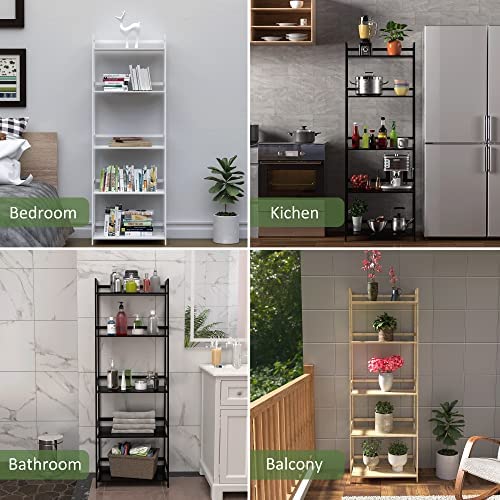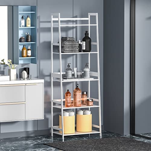 WTZ Book Shelf, White Bookshelf, Ladder Bookcase, 5 Tier Tall Book case for Bedroom, Living Room, Office MC-508