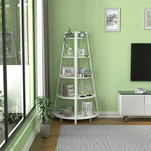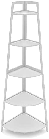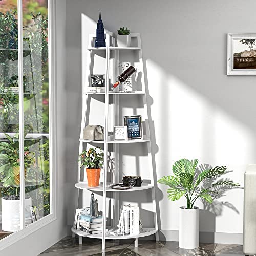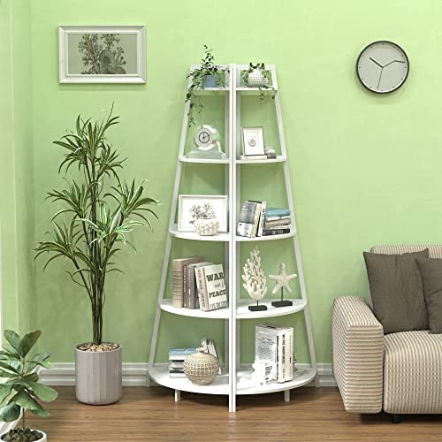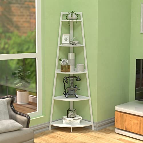 WTZ Corner Shelf, 5 Tier Bookshelf, 70.8 Inch Tall Bookcase, Open Ladder Book Case, Modern Bamboo Corner Bookshelf Stand in Living Room, Bedroom, Office, Kitchen, White