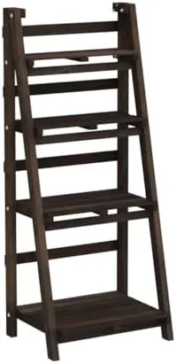 Yaheetech Foldable Ladder Shelves, Decorative Wall-Leaning Home Office Storage Rack Shelves, Display Shelving for Livingroom Bedroom Balcony, Fir Wood Brown, Simple Assembly 4 Tier