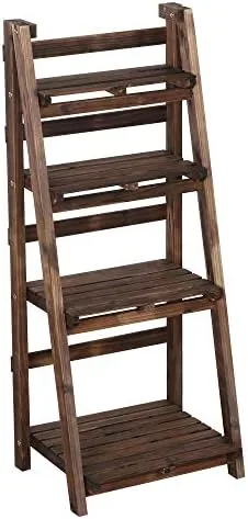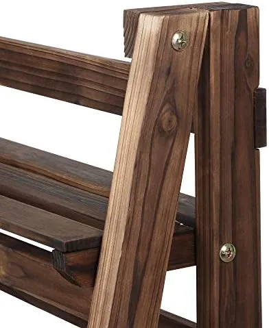 【🌼Unique Addition】The carbonization treatment gives this shelf a distressed coloring for a touch of rustic appeal. And the natural irregular wood grains make every plant shelf one of a kind.