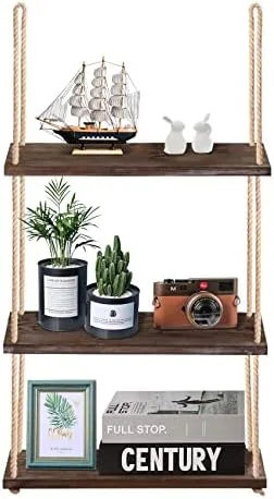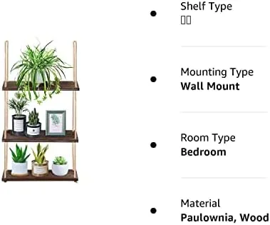 ✅ Wall Hanging Shelves That Are Made To Last: Made of thick, solid dark brown paulownia wood and eco-friendly jute rope, these floating kitchen shelves with the 3 rectangular 16.53”x7.9”x0.59” tiers are uniquely long-lasting.