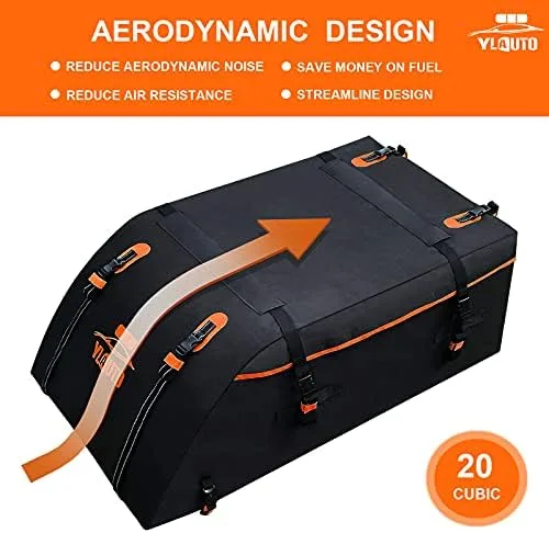 YLAUTO Rooftop Cargo Carrier,20 Cubic Feet Aerodynamic Design Rooftop Car Bag 100% Waterproof, Roof Rack Cargo Carrier with Anti-Slip Mat,Car Roof Bag Fits All Vehicle with/Without Rack