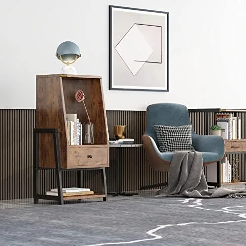 YQ FUNLIS 3 Tier Bookcase End Table with Drawer, Mid Century Modern Bookshelf, Small Ladder Shelf Nightstand Bedside Table for Living Room, Bedroom, Office, Sofa Couch, Hall, Rustic Brown