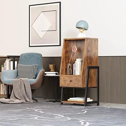 【Overall Dimension】16.9″D x 11.8″W x 35.43″H. This end table top and 3 tiers open shelves provide you sufficient storage space in a limited corner which goes well with any style of decoration. It is very good to work as small bookcase bookshelf and end table.