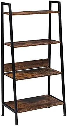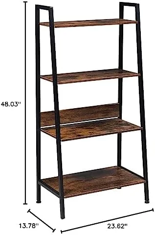 YSSOA 4-Tier Ladder Bookshelf Organizer, Rustic Brown Ladder Shelf for Home & Office, Wood Board & Metal Frame