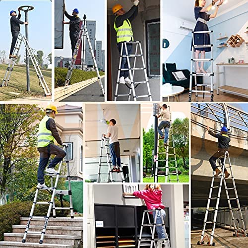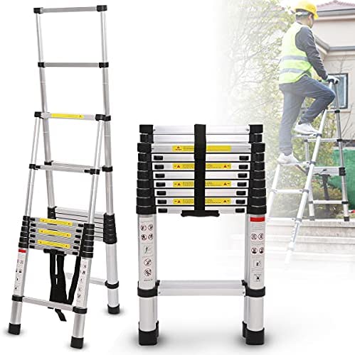★RETRACTABLE DESIGN: The aluminum telescoping ladder will become smaller when folded, saving space, and can be easily installed in a closet, the back of a van or in the trunk of a car. It is convenient to carry, light in weight and easy to transport.